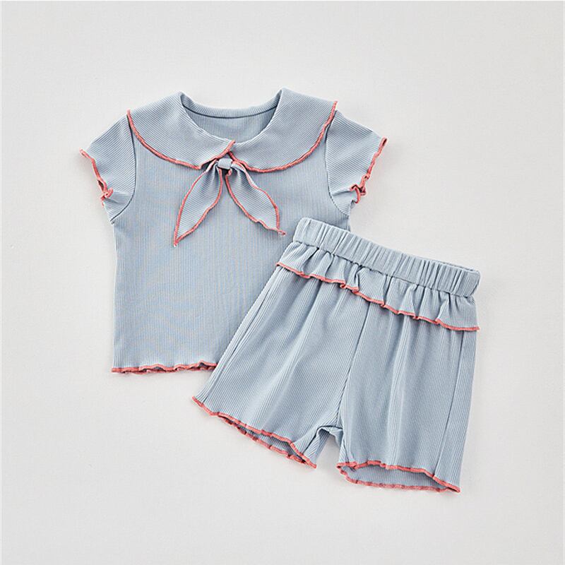 新作 子供服 部屋着 リボン セットアップ 半袖 Tシャツ ハーフパンツ 可愛い 柔らか 2色