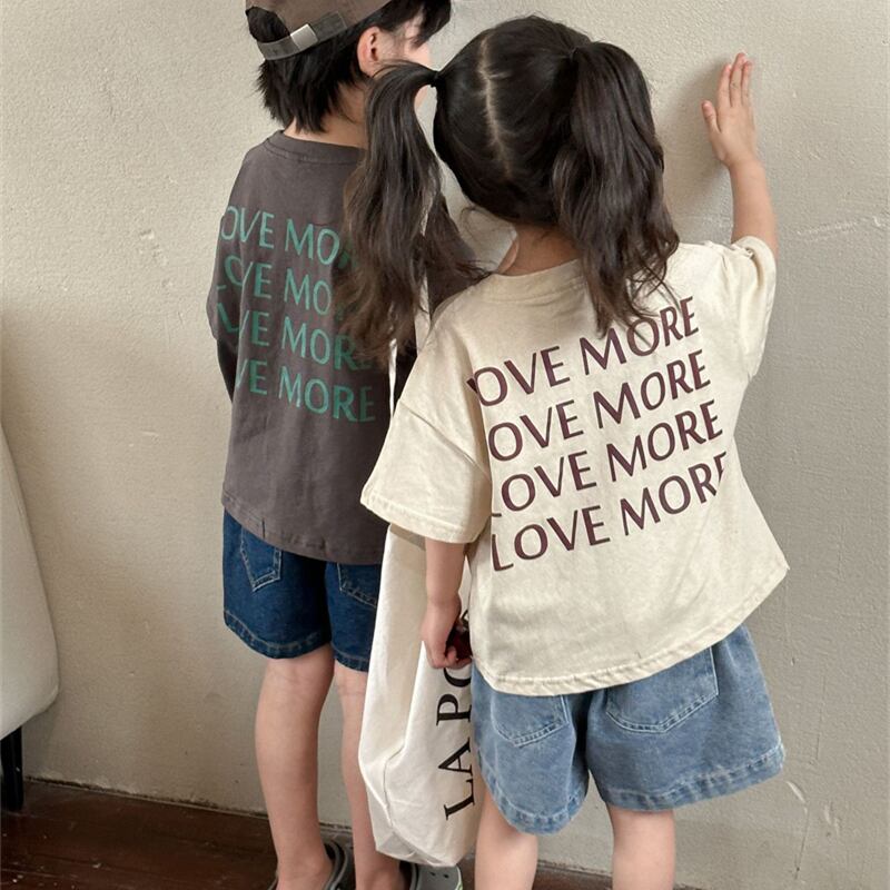 ユニセックス 韓国子供服 男女兼用 キッズ Tシャツ 英字 男の子 女の子 春 夏 80-130cm
