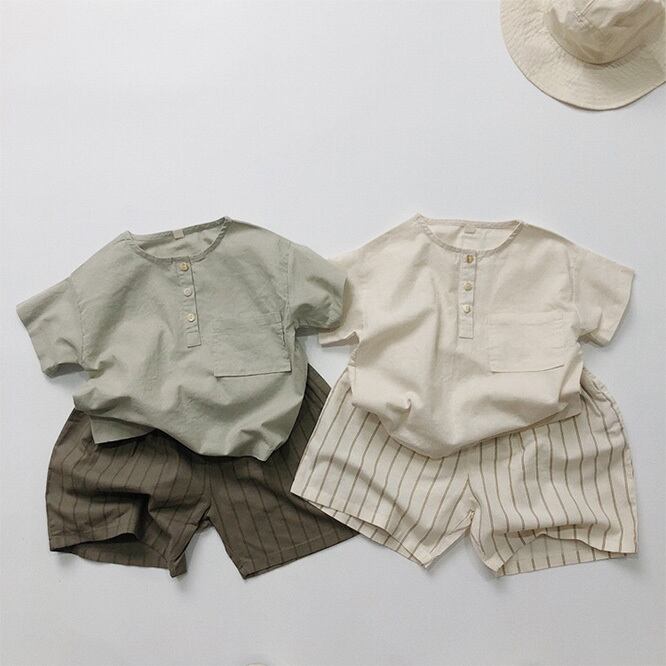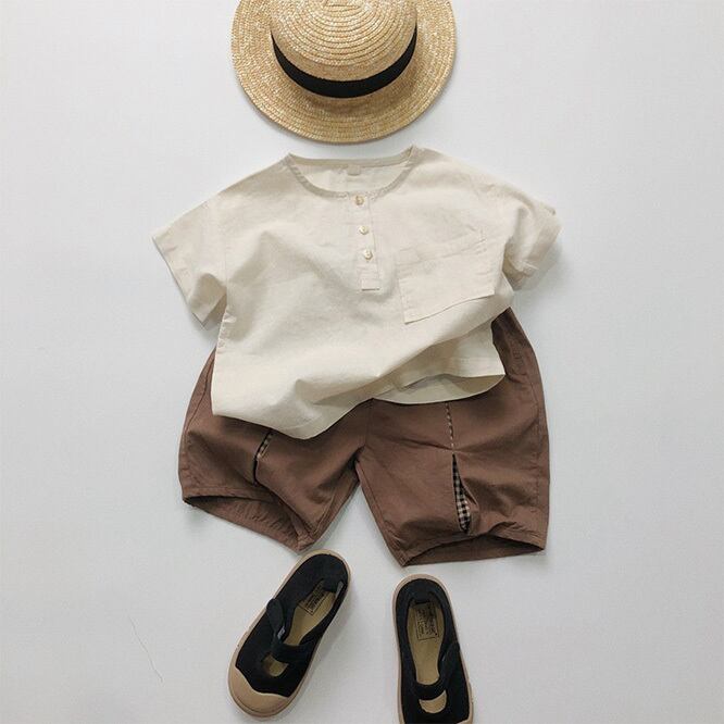 涼しく通気性抜群 韓国風 子供用 夏 Vネックオープンシャツ 男女兼用