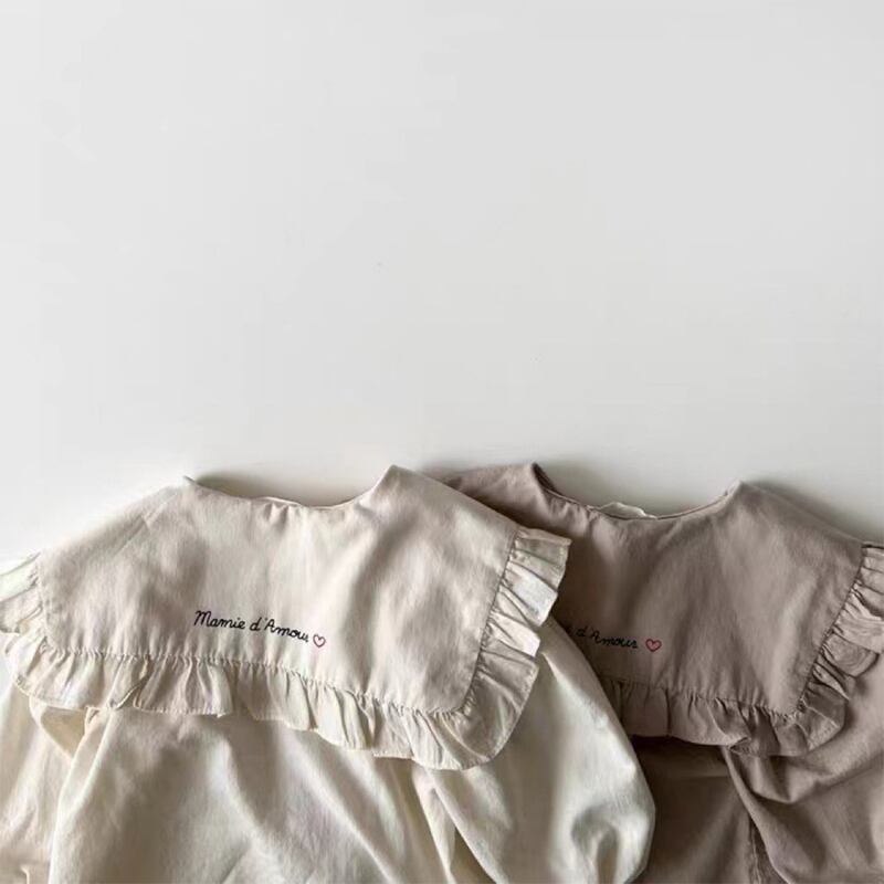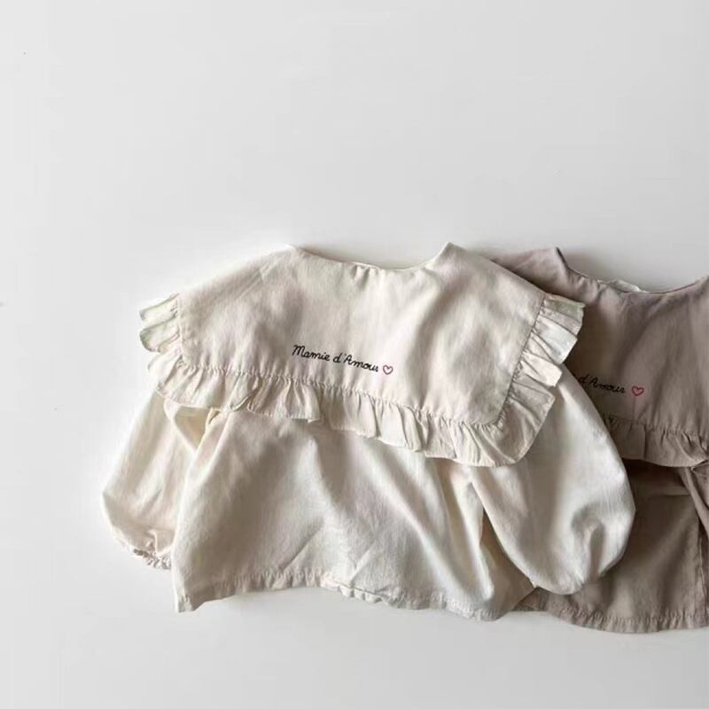 フリル付き大襟ケープシャツ 女の子用 コットン素材 ガーリートップス