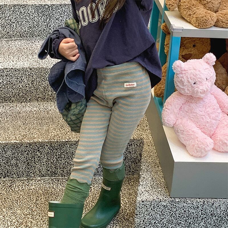 子供用 ストライプレギンスパンツ 秋用 ロング丈